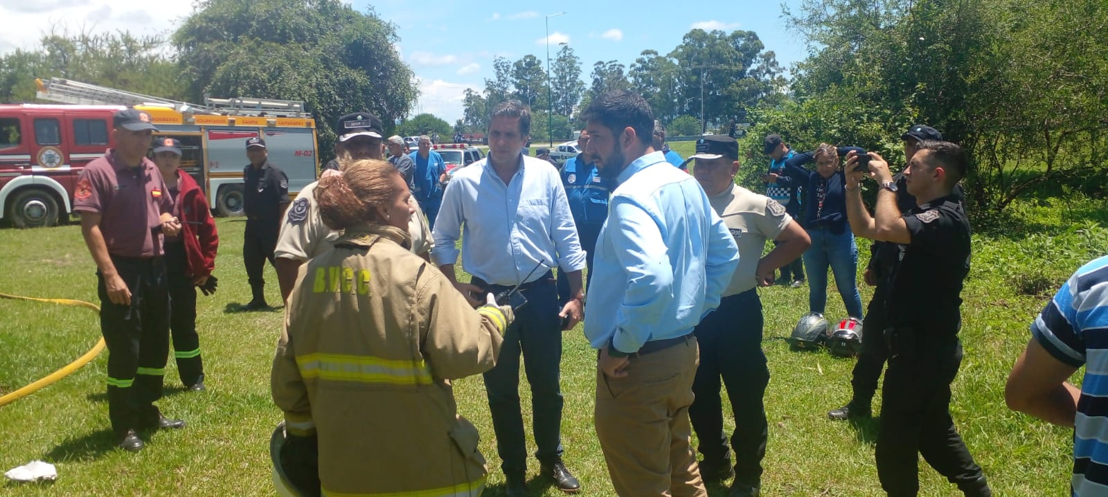 En un amplio operativo por el siniestro aéreo en inmediaciones del Club Universitario en zona norte de la ciudad, trabajan la Policía de Salta, la Subsecretaria de Defensa Civil, SAMEC, entre otros, bajo la supervisión del secretario de Seguridad, Nicolás Avellaneda. Interviene también la Fiscalía Penal 2.