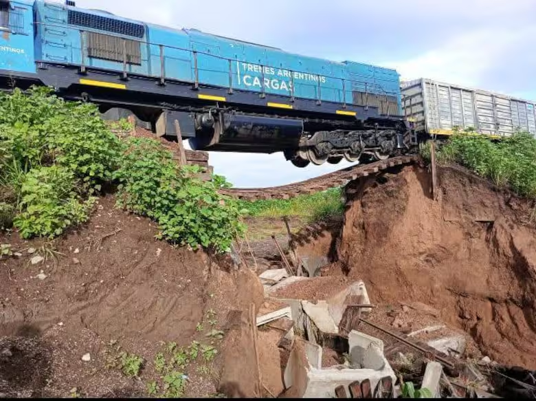 Desde Trenes Argentinos Cargas indicaron que las fuertes lluvias que cayeron en la zona en los últimos días dañaron la estructura y como consecuencia cedió el puente.
